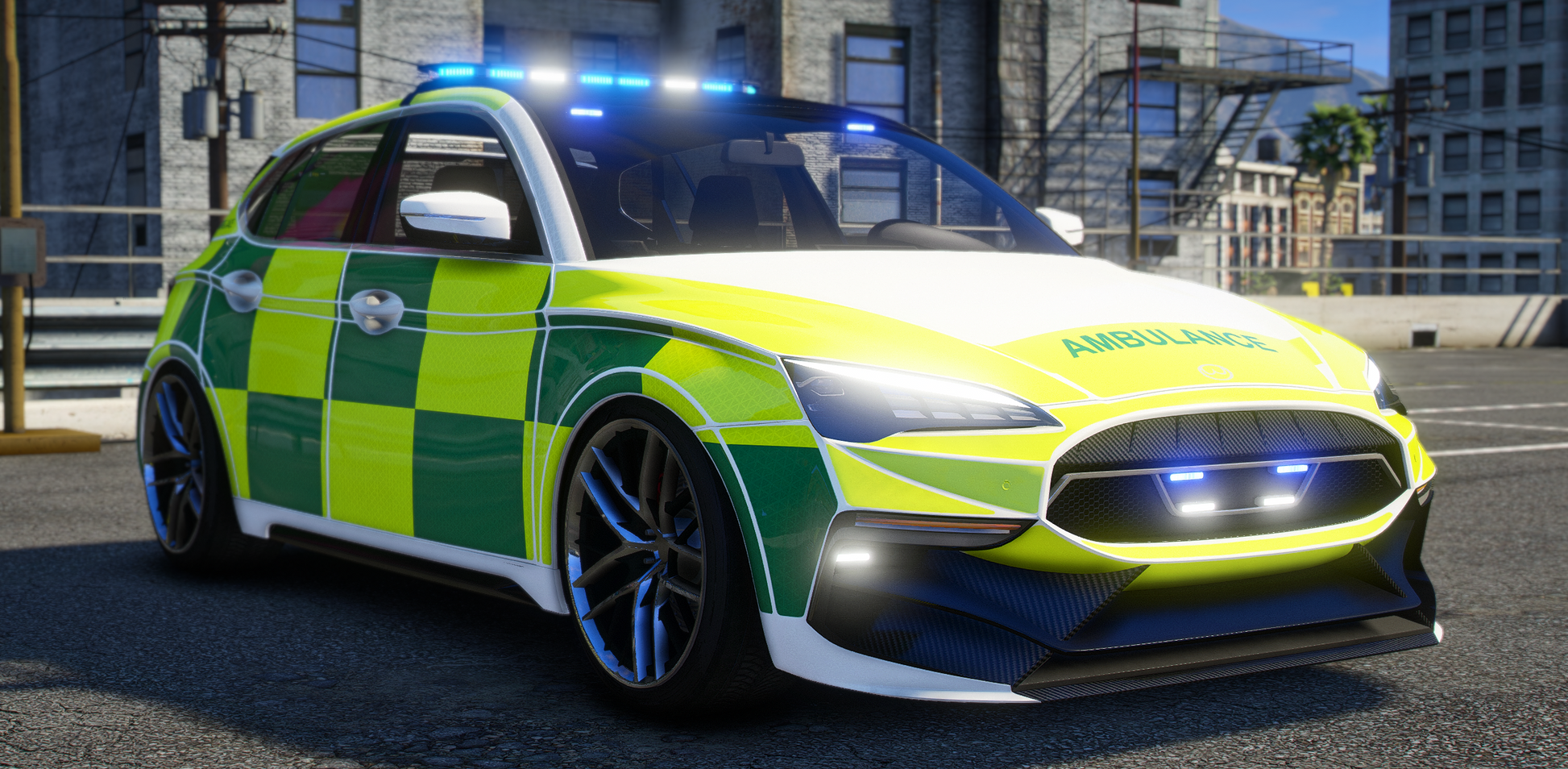 This package contains a Bollokan Swift Ambulance ELS. The package is delivered fully prepared to drag and drop into your server, however if you wish to add them to your car packs they can be.